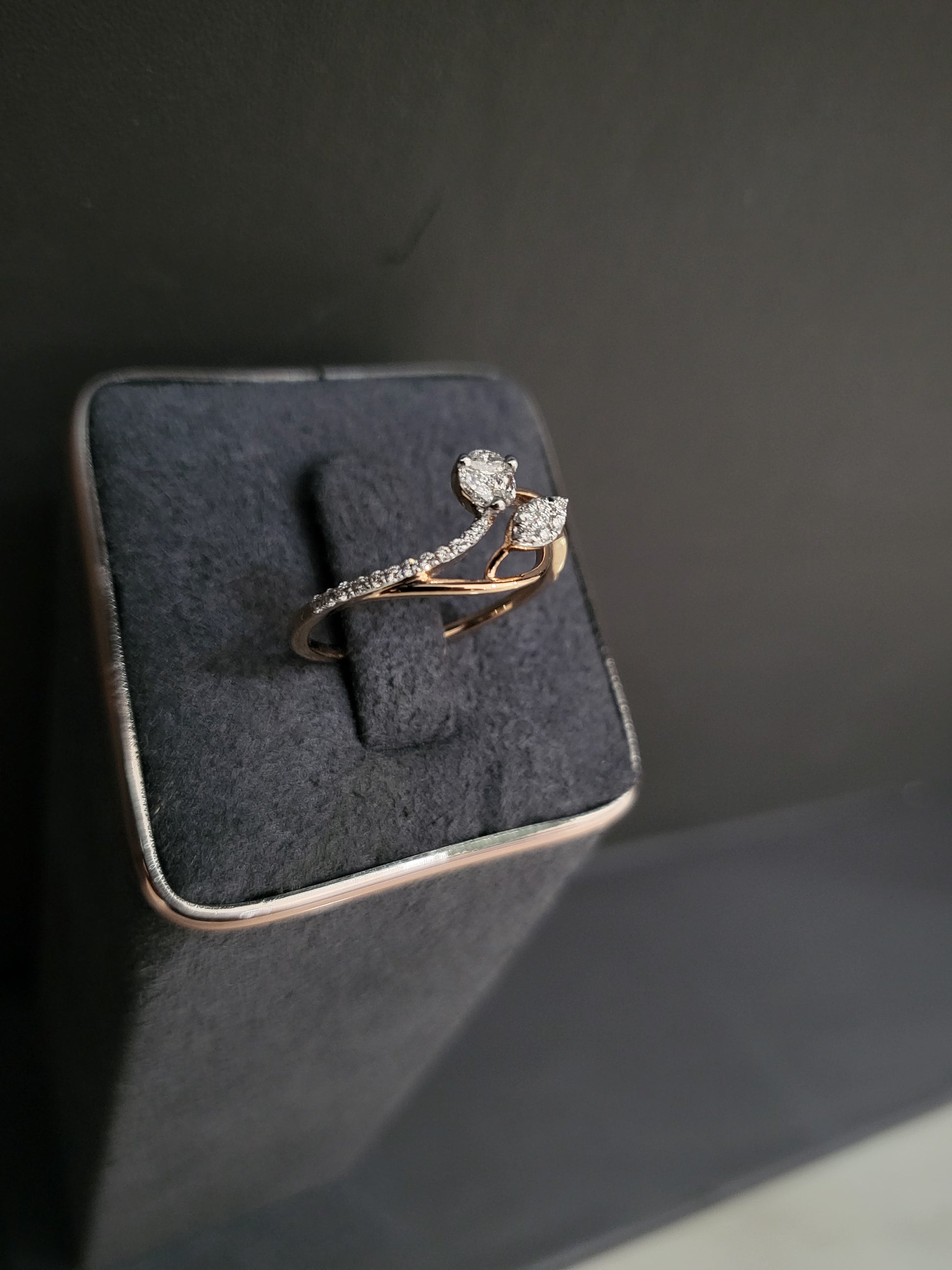 Graceful and refined, the Leaf-Inspired Diamond Ring (RG295) brings together nature’s elegance with luxurious brilliance. Designed with flowing lines and a delicate leaf motif, this ring features VVS EF-grade natural diamonds that sparkle with exceptional clarity and brilliance.
