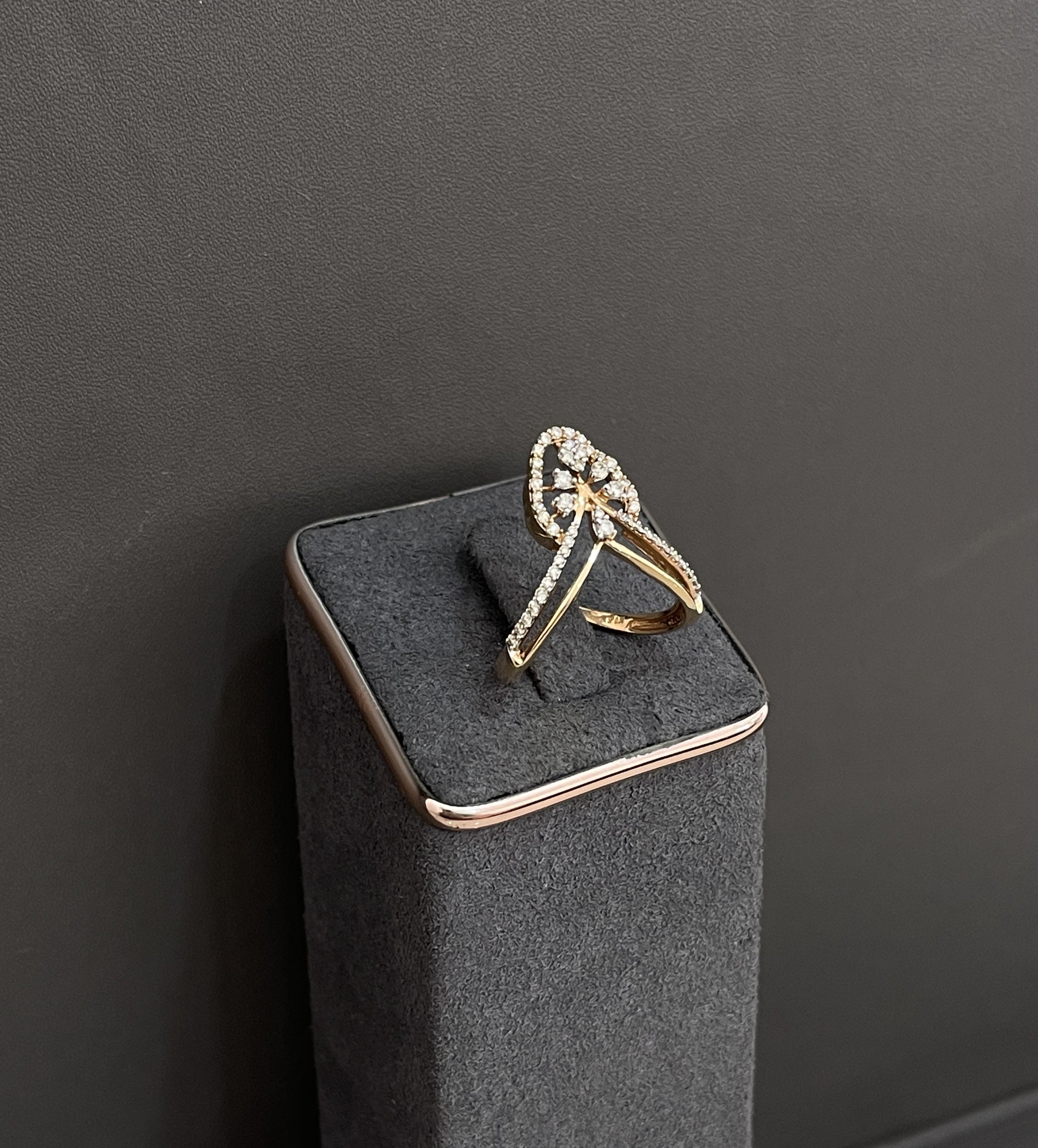 Elevate your elegance with this exquisite 18KT gold diamond ring, featuring a stunning open-top designer motif gracefully adorned with sparkling VVS EF quality diamonds. The delicate curves and intricate craftsmanship create a luxurious and modern appeal, perfect for both everyday sophistication and special occasions.